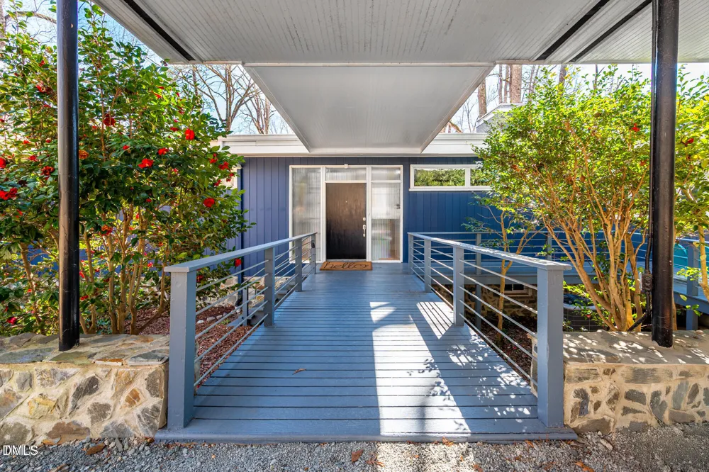 Welcome to 1004 Kings Mill Rd, the Roger Howell house, a classic NC Modernist gem designed by John Latimer on a private road nestled in the heart of Chapel Hill, NC. This home has a gorgeous all-weather outdoor living space that overlooks 600+ acres of botanical trails, the woods James Taylor played in growing up. Bathed in natural light aided by large windows, enjoy the designer gas fireplace and chef's kitchen. 4 bedrooms, office space, and a full suite downstairs w/kitchen make this the unicorn minutes from UNC and downtown that you're looking for! Even the 3 car carport and outdoor spiral staircase delivers modern flair. It's near impossible to get an NC Modernist home so meticulously renovated and maintained, so don't wait to see it! Over 80k in recent upgrades!