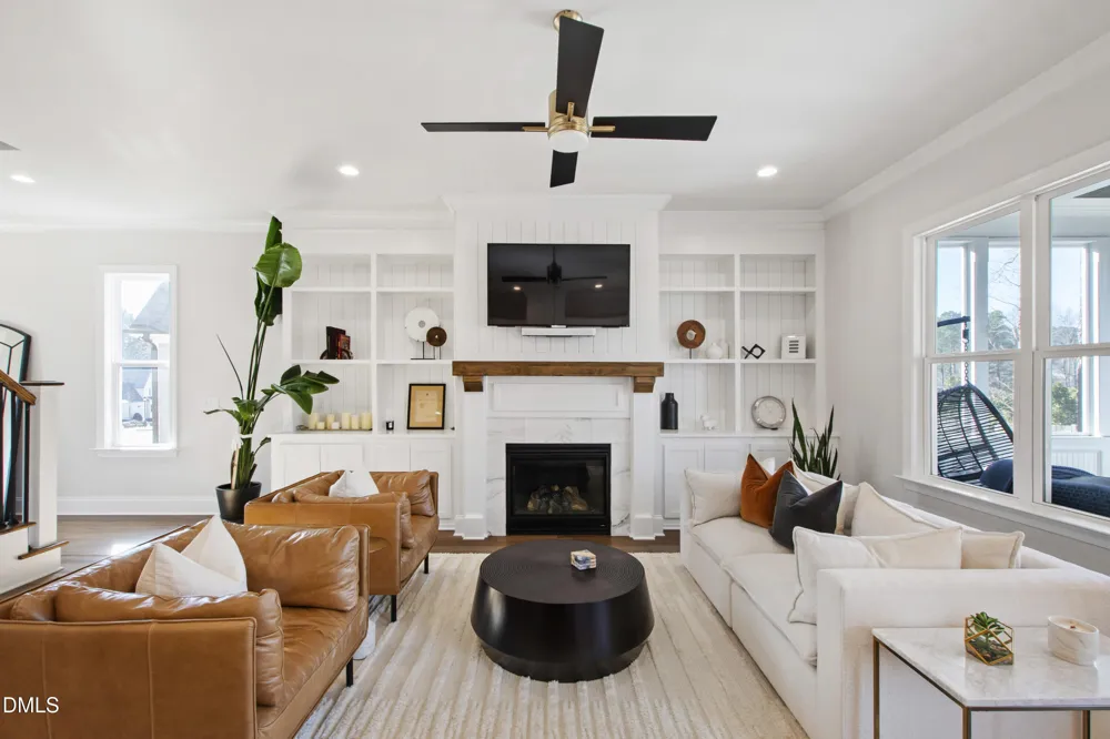 Beautifully designed and impeccably maintained, this like-new residence offers refined living in one of Apex's most desirable locations, just minutes from Cary's premier shopping, dining, and amenities, with easy access to major highways. Modern architecture and thoughtful upgrades create a polished yet inviting atmosphere throughout the home. The natural lighting in this home is stunning- you have to see to believe! The main living area features custom built-ins and flows seamlessly into a gourmet kitchen designed for both everyday living and elevated entertaining. High-end finishes, generous storage, and a clean, modern aesthetic make this space as functional as it is beautiful. A screened-in porch extends the living space and provides a private retreat overlooking the outdoors. A main-level guest suite with a full bath offers exceptional flexibility for guests or multi-generational living. Upstairs, each bedroom is thoughtfully designed as a private suite, complete with its own full bath and walk-in closet. A spacious third-floor bonus room adds another layer of versatility, ideal for a media room, home office, or additional living space. Set in a prime Apex location near Cary, Raleigh, and RTP, this move-in ready home blends modern luxury, flexible living spaces, and an exceptional setting. A rare opportunity for buyers seeking elevated design, convenience, and a home that feels both sophisticated and cozy.
